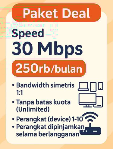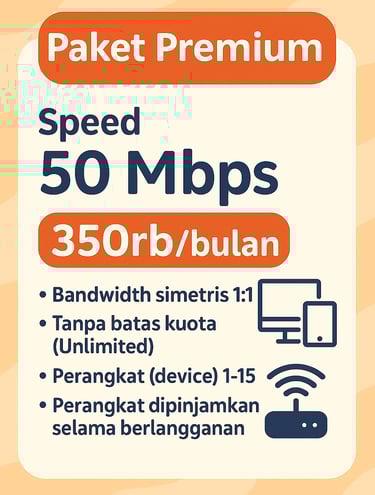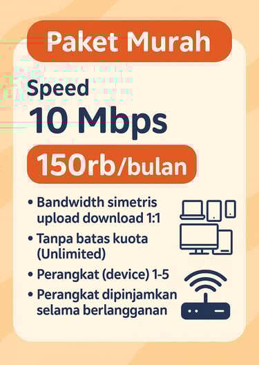 Koneksi cepat dan stabil, sangat membantu untuk pekerjaan dan belajar. Pelayanan pelanggan yang ramah!