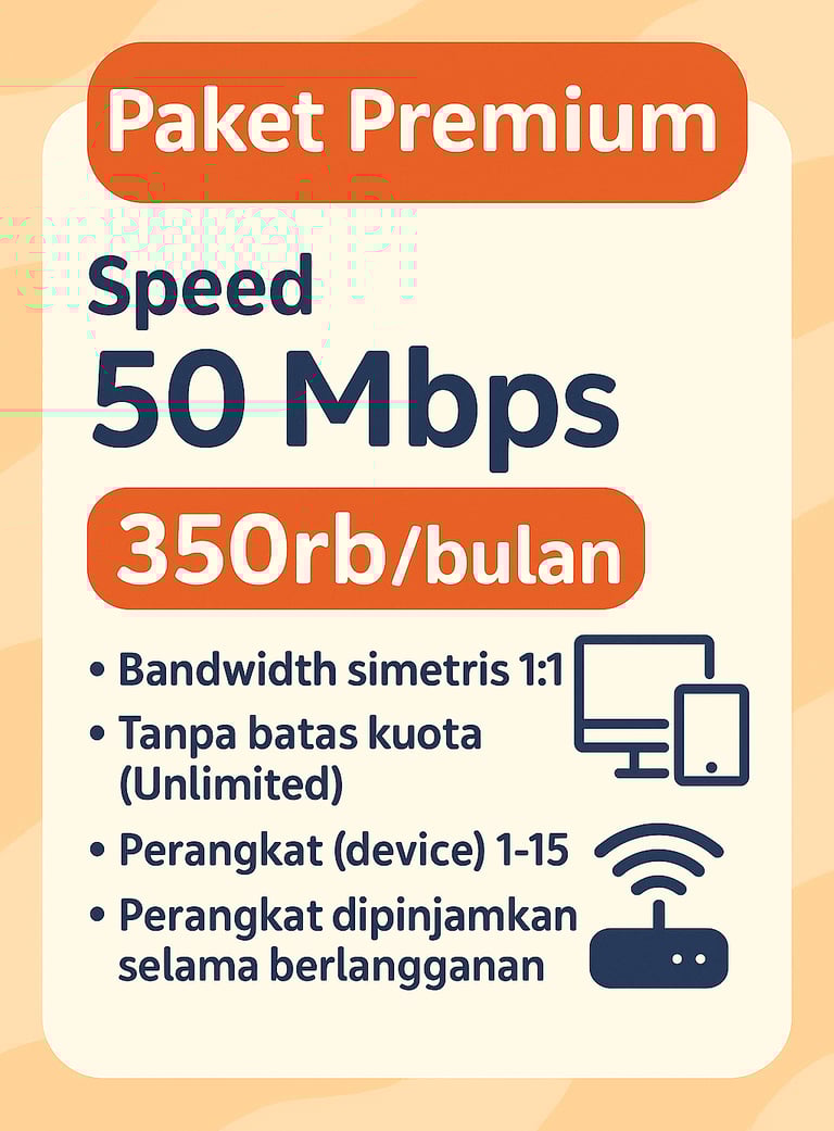 Koneksi cepat dan stabil, sangat membantu untuk pekerjaan dan belajar. Pelayanan pelanggan yang ramah!